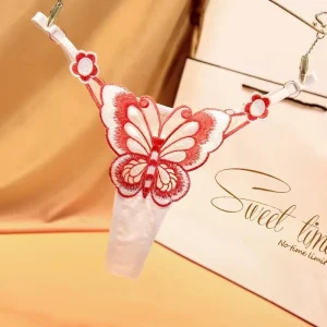Moreover, the butterfly-inspired embroidery gives the design a more eye-catching and artistic look. At the same time, the sheer mesh keeps the overall style light and delicate. Therefore, this thong works beautifully for special occasions, romantic gifting, and shoppers who want lingerie that feels polished yet easy to wear.