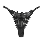 Before wearing, adjust the side straps carefully so the thong sits evenly on the hips. After washing, store neatly folded so the flower appliques and mesh keep their elegant form. With proper care, this thong will stay soft, flattering, and ready for many occasions.