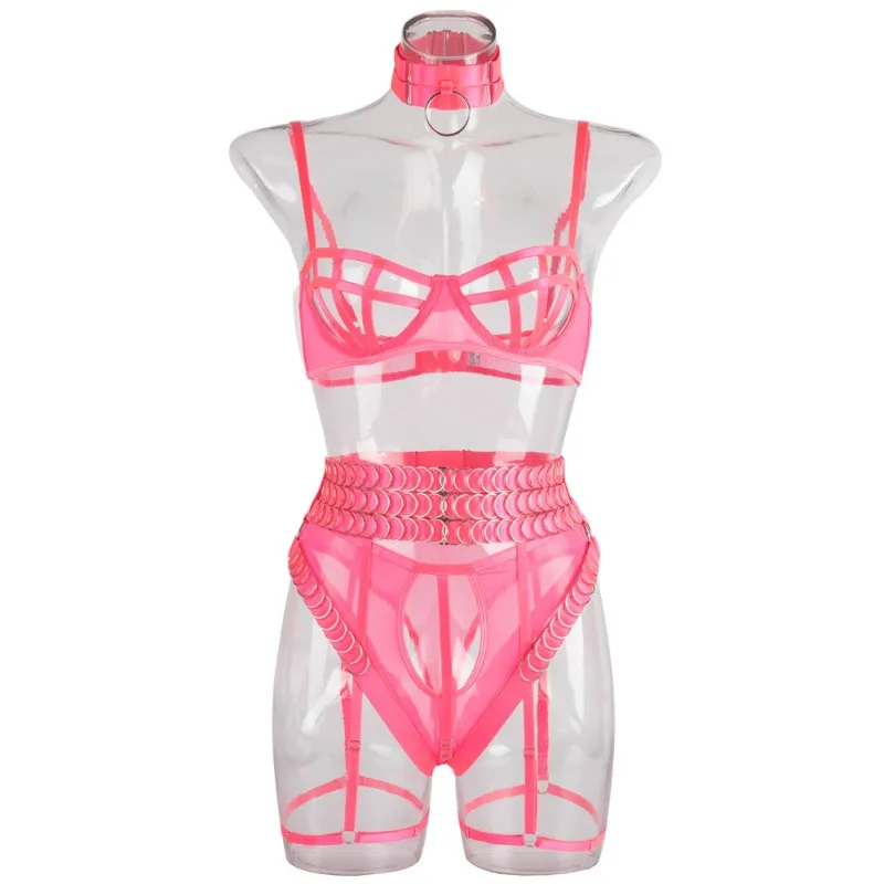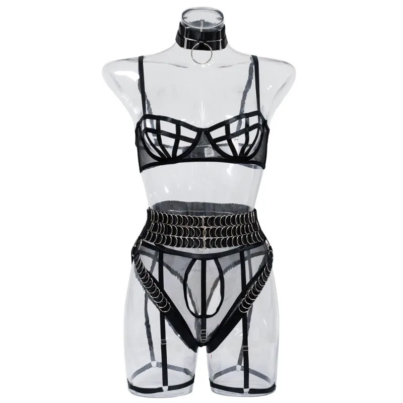 The thinner fabric supports a sleek effect, while the open design keeps the silhouette more expressive. Not only does that make the set look more daring, but it also helps highlight the body in a more refined way. If you love bold but elegant styles, you may also like our statement lingerie sets collection.