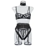 This style stands out through structure and detail. The chest support straps help frame the upper body, while the hollow out design adds contrast and gives the set a more confident finish. Moreover, the split styling effect brings a stronger fashion edge to the piece. As a result, the set looks more styled and intentional than a basic lingerie option.