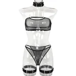 At the same time, the lace effect adds texture and visual depth. As a result, the set feels more polished than a simple underwear pairing. The transparent styling keeps the design light, while the coordinated pieces help create a more complete and balanced look. Whether you want something special for a private evening or simply enjoy expressive lingerie, this set offers a feminine option with a softer mood.
