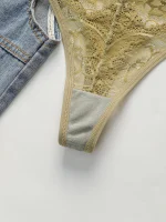- Flattering lace thong set design