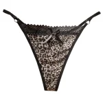 leopard lace mesh thong with low rise fit and sheer feminine detail
