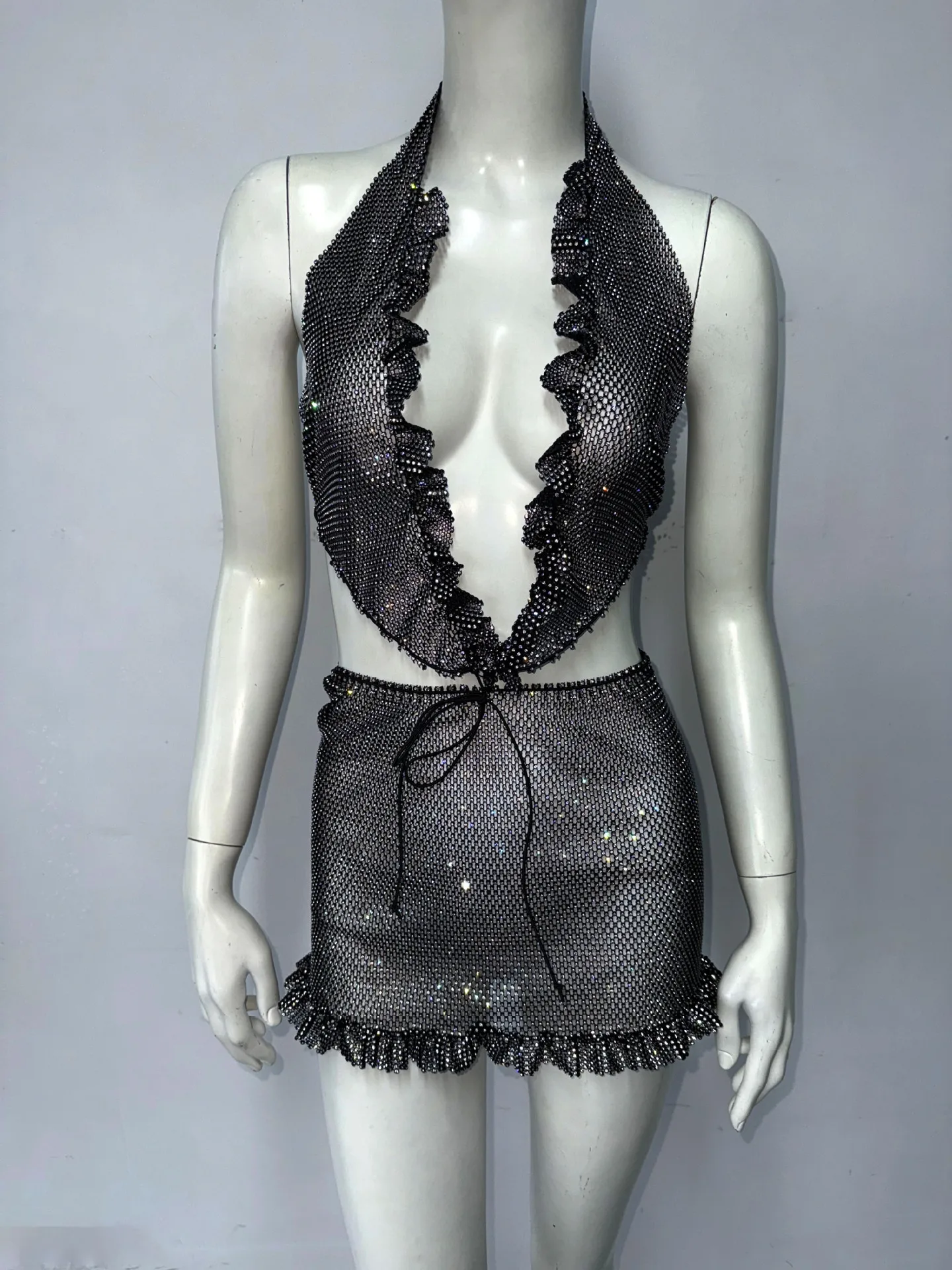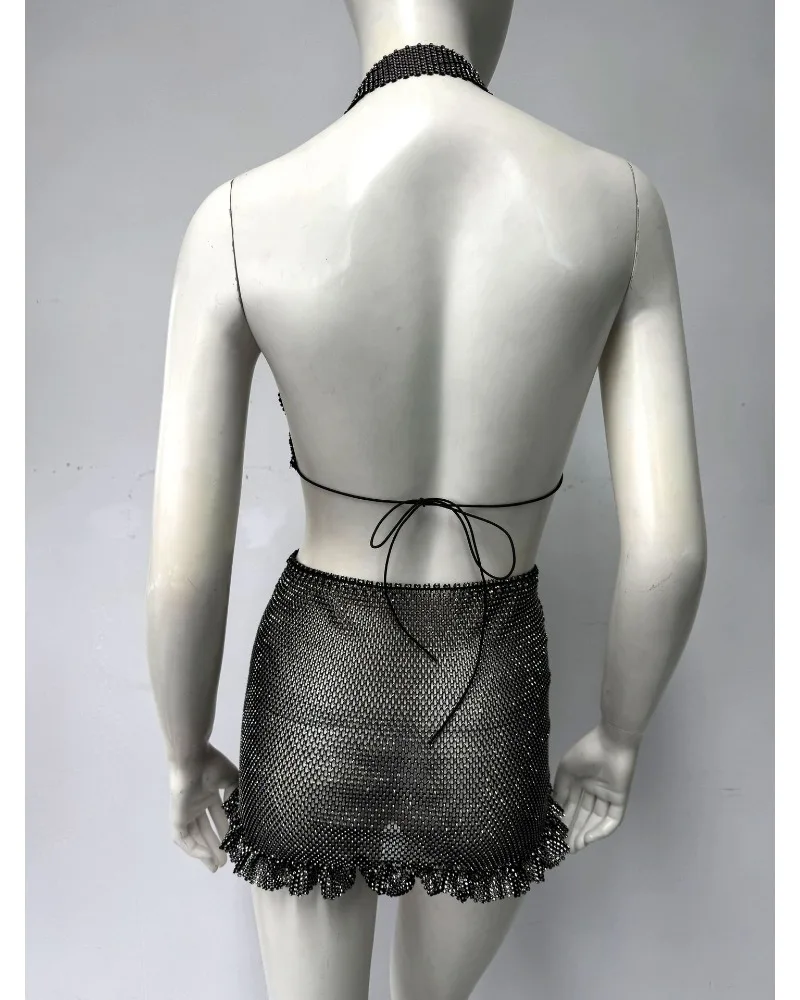 This set is made to stand out from the first glance. The halter neckline frames the upper body beautifully, while the deep plunge effect adds a daring and feminine finish. At the same time, the lightweight fabric keeps the look soft and fluid instead of heavy.
