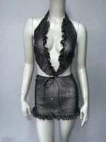 The plunge halter lingerie set is designed for women who love bold styling, dramatic details, and a confident silhouette. In addition, this plunge halter lingerie set combines a deep neckline, sheer fabric, and a body-skimming shape for a look that feels seductive and fashion-forward. As a result, it creates instant visual impact while still keeping the design elegant and wearable.