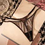 Butterfly strap thong with low waist fit, lace embroidery, and elegant double strap detail