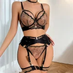 The sexy embroidery lingerie set is crafted from a blend of polyester and elastane. This combination creates a soft texture while maintaining durability and flexibility. As a result, the lingerie adapts comfortably to the body while preserving its shape.